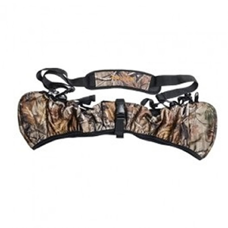 - Removable, padded shoulder strap Stores compact using built-in elastic band D-ring to quickly connect