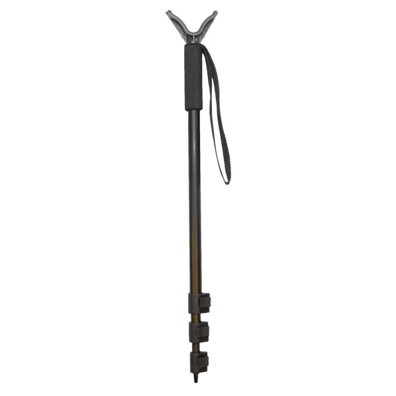 The patented Deluxe Shooter’s Staff by Allen has a padded grip surface and a matte black finish on the aluminum body. The staff adjusts from 21.5-inches to 61-inches tall and works as a camera staff. Top section is removable via rotational attachment, and therefore should be occasionally tightened.