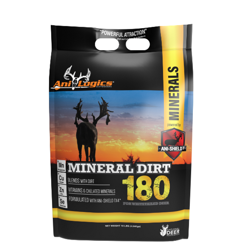 Ani-Logics™ studied free-range deer around the country and found 4 key micro minerals that help facilitate maximum antler growth that were lacking in the diets of whitetails, and included them in Mineral Dirt® 180! Mineral Dirt® 180 contains Ani-Shield TX4® Technology that provides nutrients your deer may be missing, like vitamins, probiotics, essential oils, and important bone-building minerals such as: Copper, Zinc, Selenium, and Manganese.