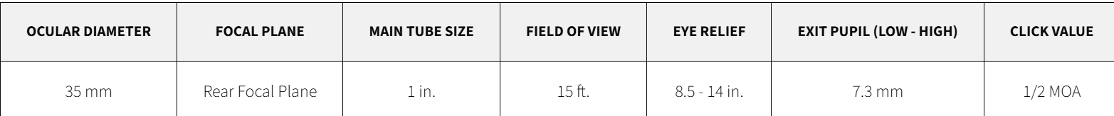 - Reticle provides long-range accuracy in a simple, uncluttered design