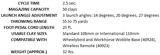 Moving up to an electronic trap was once a major investment in space and money, Not Anymore. The affordable Champion Workhorse Electronic Trap lives up to its name, combining high-volume target-throwing capacity in a compact design. It fits in the trunk of most any vehicle, and can be unloaded and set up by one person. The detachable magazine holds up to 50 clays, and can throw them with three different launch angles up to 75 yards.