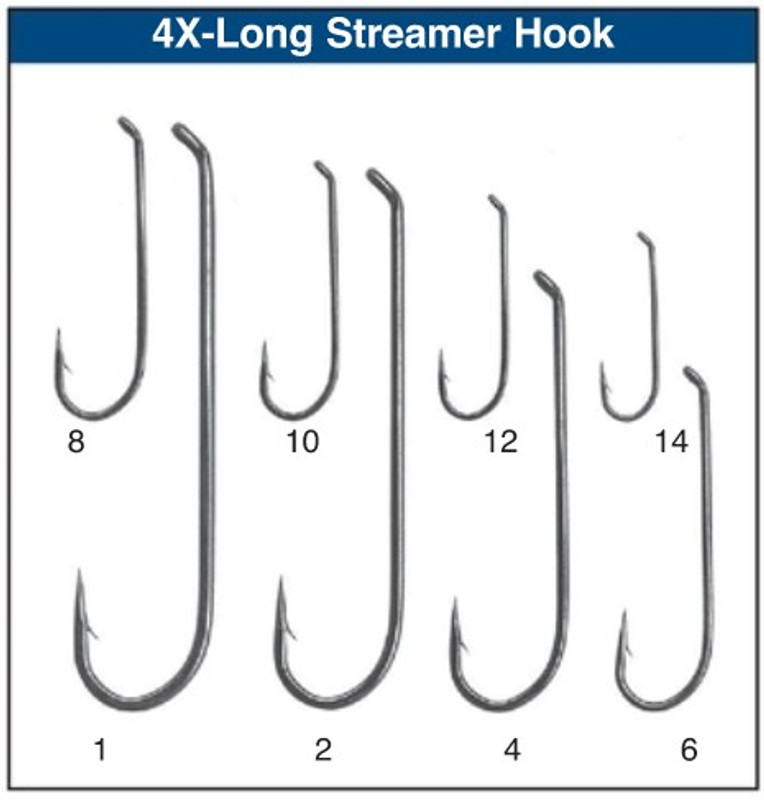 The Daiichi 2220 (Bronze) 4X-Long Streamer Hook has a round bend, down eye, 1X heavy wire and a 4X long shank.