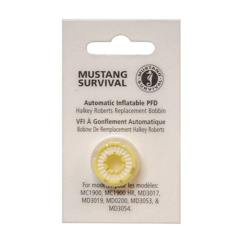 Bobbins are a replacement part for older Halkey Roberts-type automatic inflators. They dissolve when immersed in water and cause the CO2 cylinder to inflate the PFD.