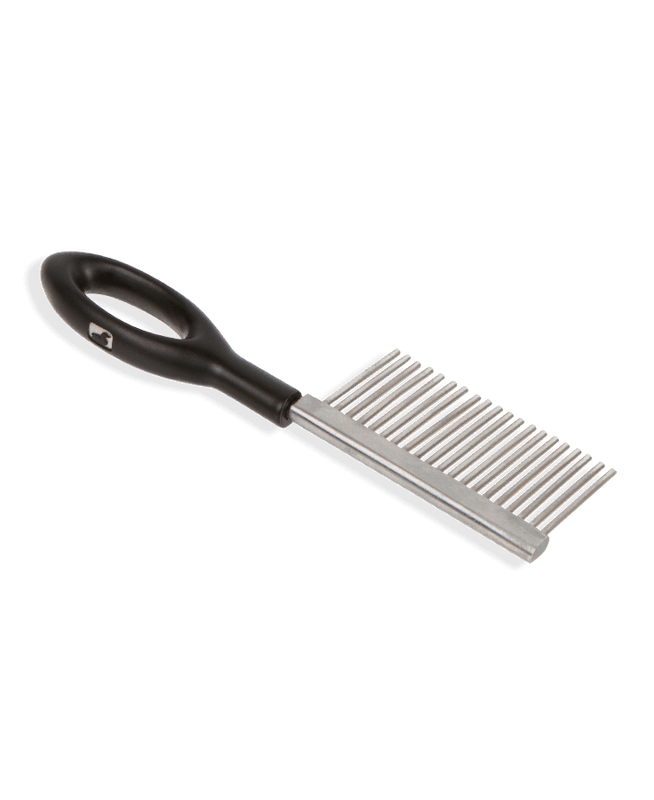 The solution to unruly materials at the vise or mangled streamers on the water. The ergonomic powder coated tool is easy find and comfortable in hand, and the stainless steel shaft and teeth make quick work of messy flies at the bench or on the water.