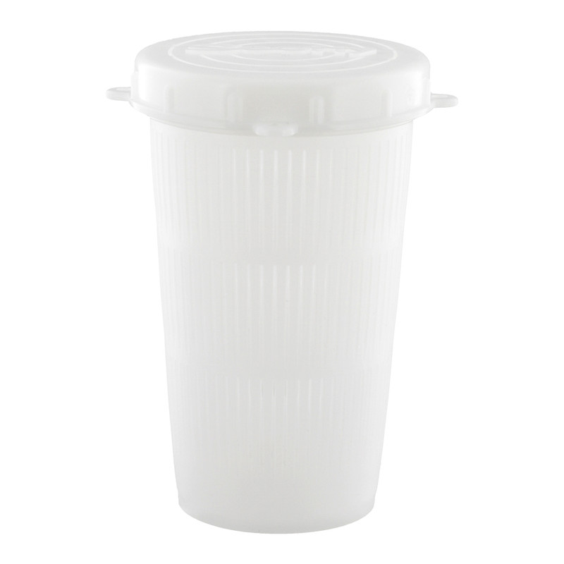 A rugged container for storing bait or for protecting bait in a crab or prawn trap. The quick unscrew lid and vented body have the right size slots to send the bait smell out, yet protect the bait from most parasites.